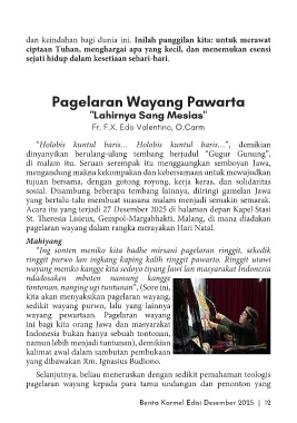 pagelaran wayang dalam rangka merayakan Hari Natal.
